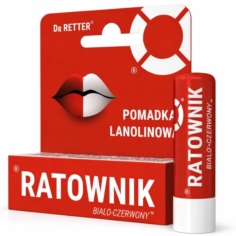 ratownik biało-czerwony pomadka ochronna lanolinowa