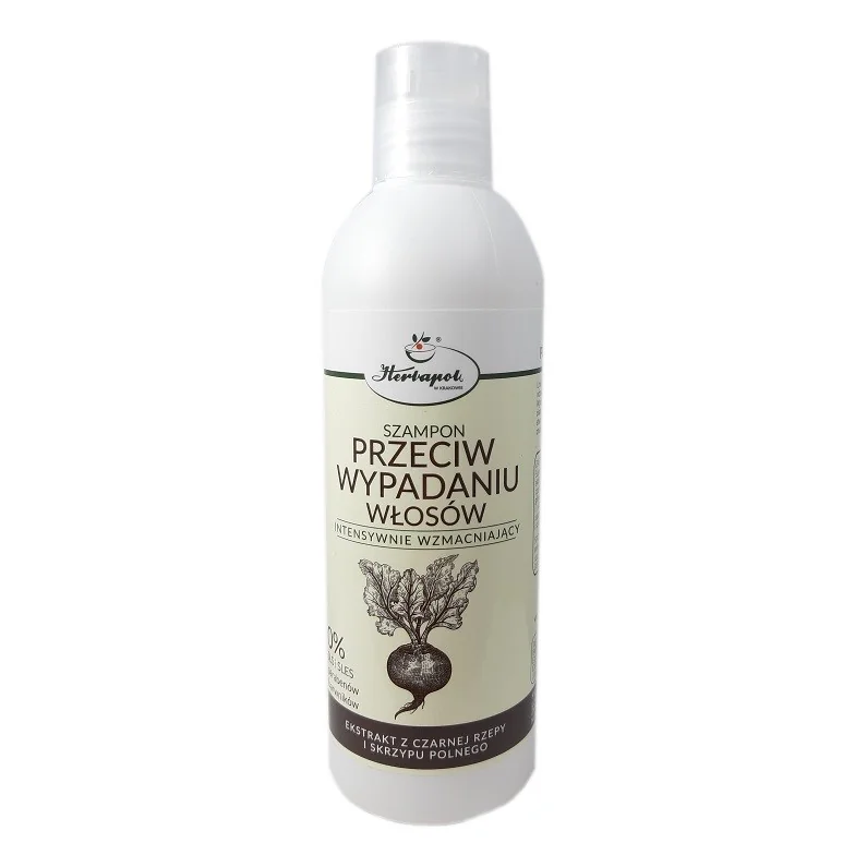 Szampon przeznaczony do mycia włosów osłabionych ze skłonnością do wypadania. Zawarty w składzie wyciąg z korzenia czarnej rzepy i ziela skrzypu działa ściągająco, utrzymuje skórę głowy w dobrej kondycji, zapewnia dobrostan skórze głowy i włosom. Regularne stosowanie wzmacnia włosy, przez co zapobiega ich wypadaniu. Szampon nadaje włosom połysk i sprawia, że są miękkie w dotyku.